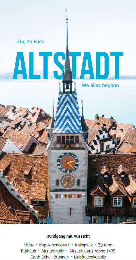 Diese Broschüren auf Deutsch, Englisch und Französisch laden ein, auf einem Rundgang diverse Gebiete in Zug zu erkunden. Sie sind der persönliche Reiseführer, welcher Geschichten zu einigen markanten Gebäuden, Plätzen und Orten erzählen. Diese sind mit Hilfe der Übersichtskarte leicht zu finden. Folge dem Stadtplan und erkunde die Stadt und ihre historische(n) Geschichte(n)!